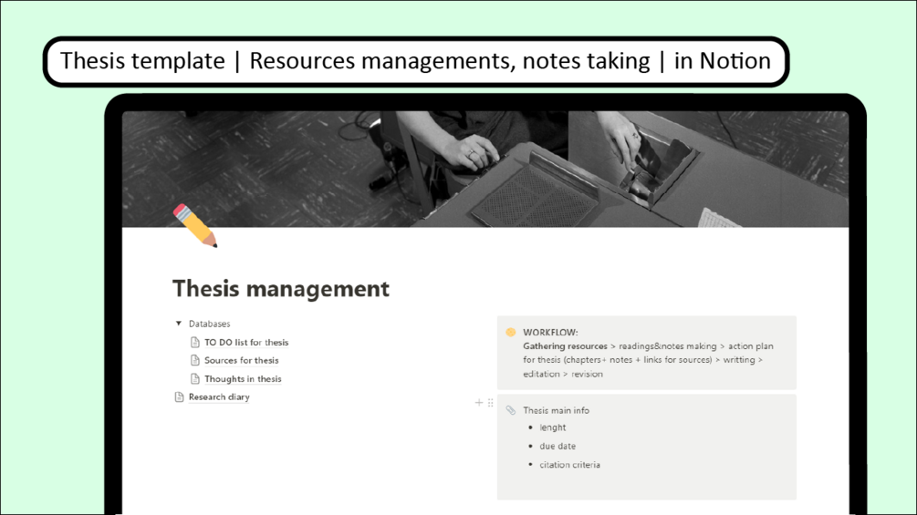 Thesis template | Resources managements, notes taking, structure of paper | in Notion